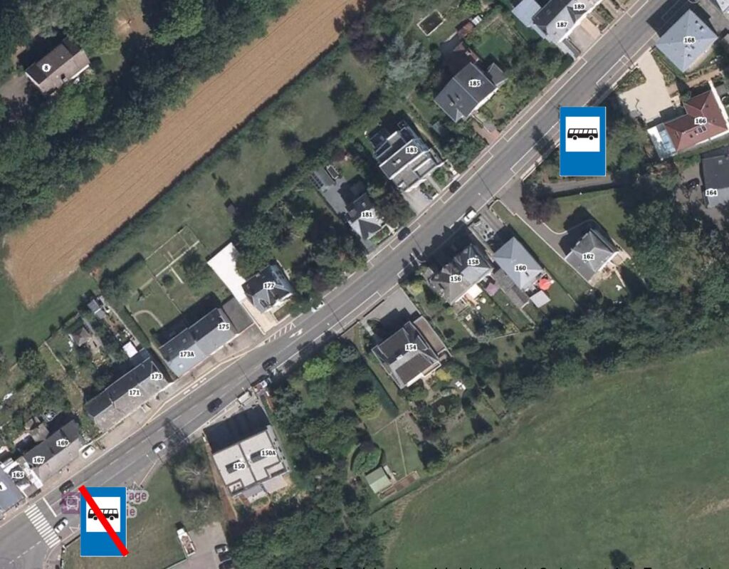 En raison de travaux, l’arrêt de Bascharage-Brasserie (dans le sens Bascharage – Schouweiler) sera déplacé de +/- 200m en aval devant les maisons n° 162 – 166 dans l’avenue de Luxembourg à partir du lundi 28 septembre 2020 et jusqu’au vendredi 30 juillet 2021 inclus.