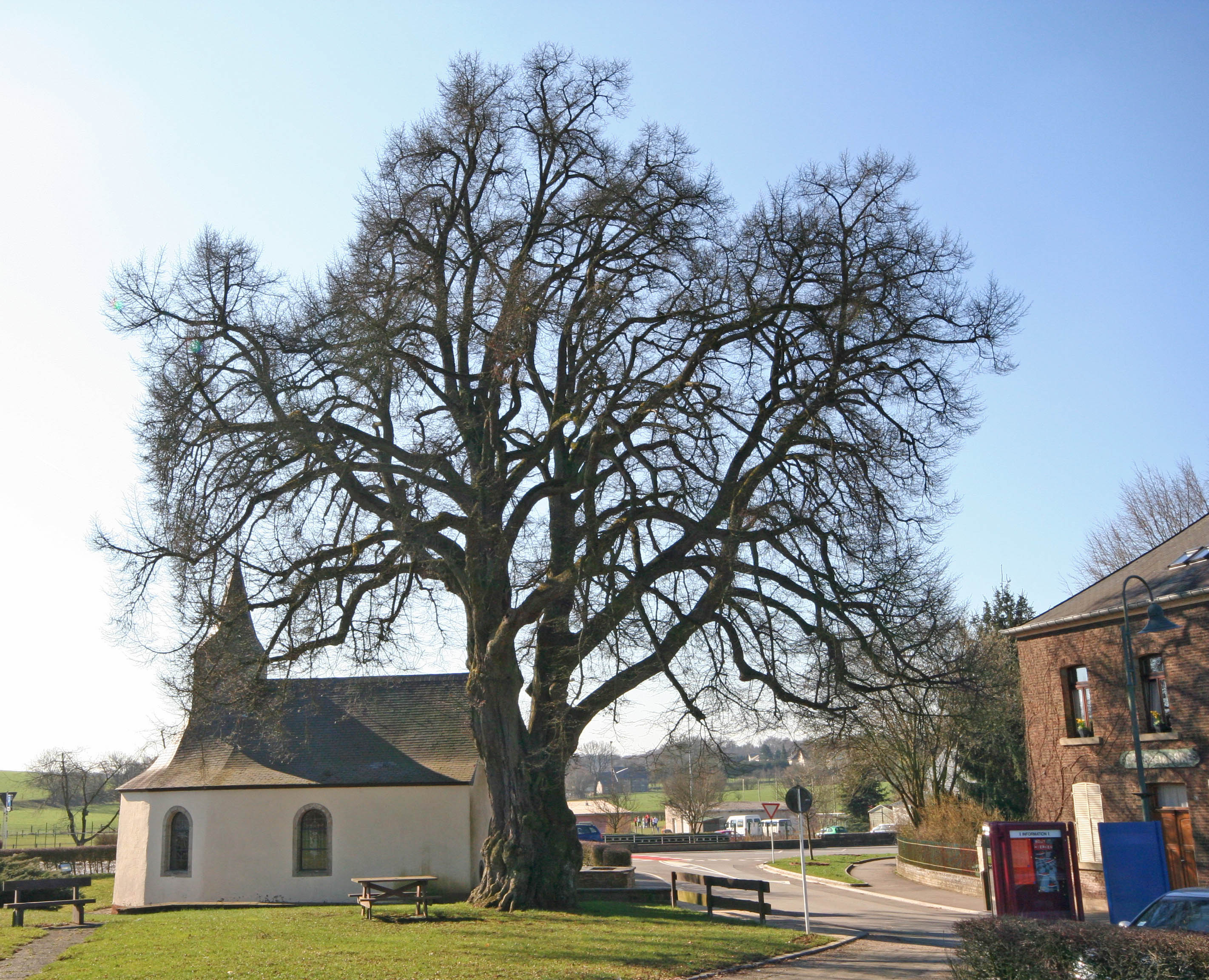 Un des plus vieux arbres du Grand-Duché, un tilleul à petites feuilles (tilia cordata), appelé par les locaux “D’wëll Lann” (tilleul sauvage).